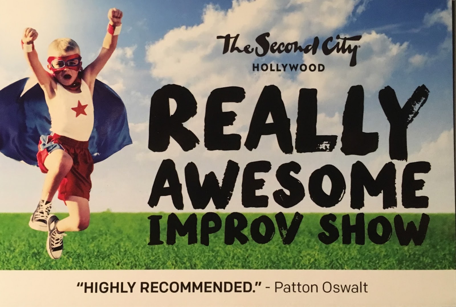Segundo: estava razoavelmente cheio. O palco principal do The Second City é um teatro de bolso, não contei os lugares, mas devem ser no máximo uns 100. Tinha meia casa. E estava chovendo e isso é MEGA estranho em Los Angeles.